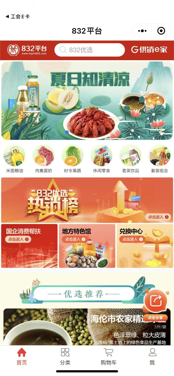 “工会E卡”与“832平台”等多家消费惠农平台进行了打通,方便了大家采购惠农产品。